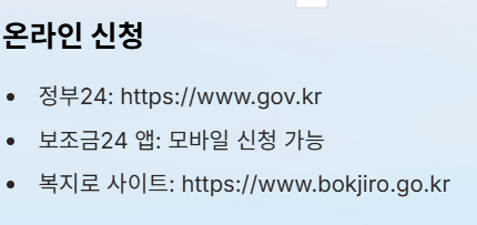 - 신청은 정부24, 보조금24, 주민센터에서 가능