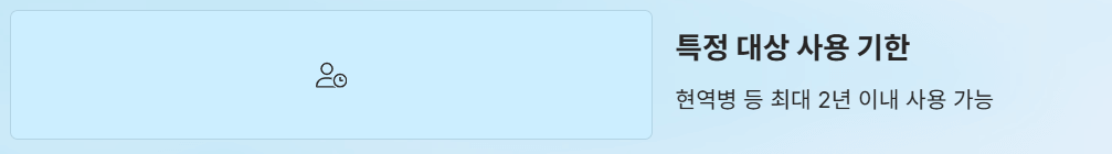 - 현역병 등 특정 대상: 최대 2년 이내 사용 가능