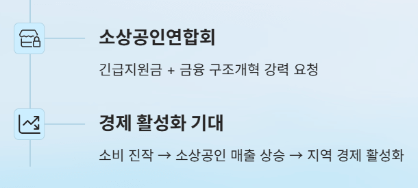 - 소비 진작 → 소상공인 매출 상승 → 지역 경제 활성화 기대