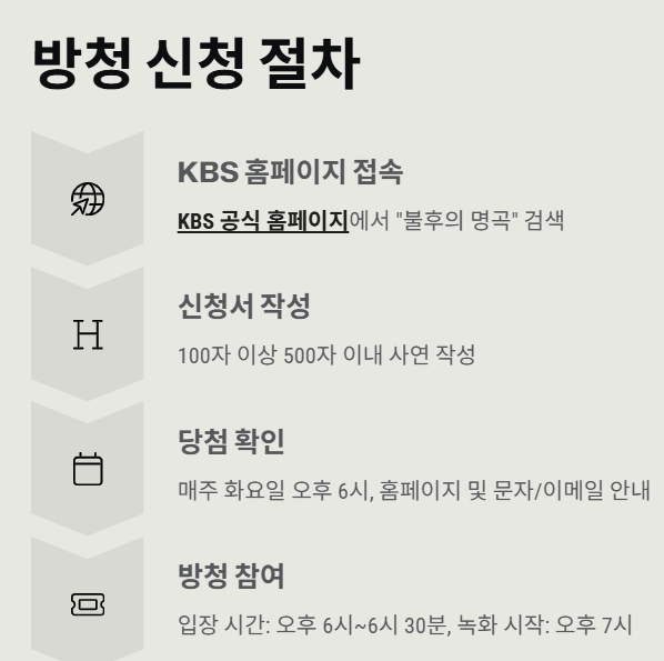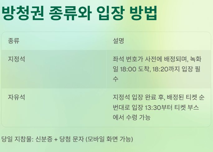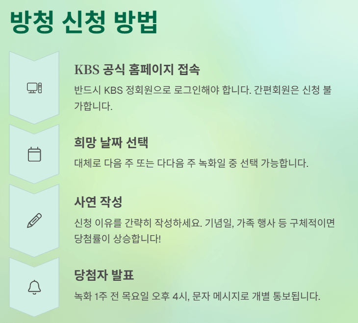 A1. 별도 예매 시스템을 통해 관객 신청이 가능하며, 자세한 일정은 KBS 공식 채널을 통해 공지될 예정입니다.