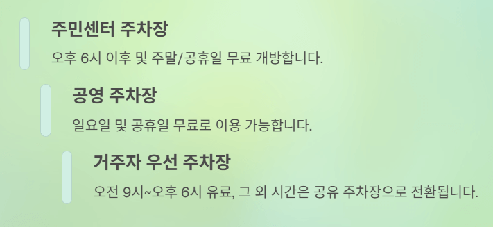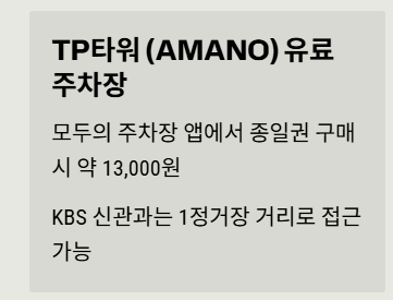 A4. 주차 공간은 제한적이며, 대중교통 이용을 권장합니다.