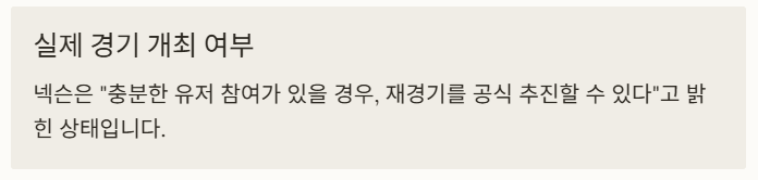 A. 넥슨은 “충분한 유저 참여가 있을 경우, 재경기를 공식 추진할 수 있다”고 밝힌 상태입니다.