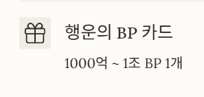 - 행운의 BP 카드 (1000억 ~ 1조 BP) 1개