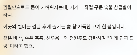 🍖 찜질 후 ‘숯 삼겹살’? 이 조합 실화?