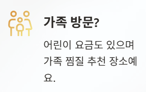 A: 물론입니다. 어린이 요금도 있으며 가족 찜질 추천 장소예요.