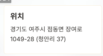 - 주소: 경기도 여주시 점동면 장여로 1049-28 (청안리 37)