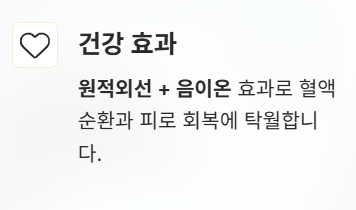 - 원적외선 + 음이온 효과로 혈액순환과 피로 회복에 탁월