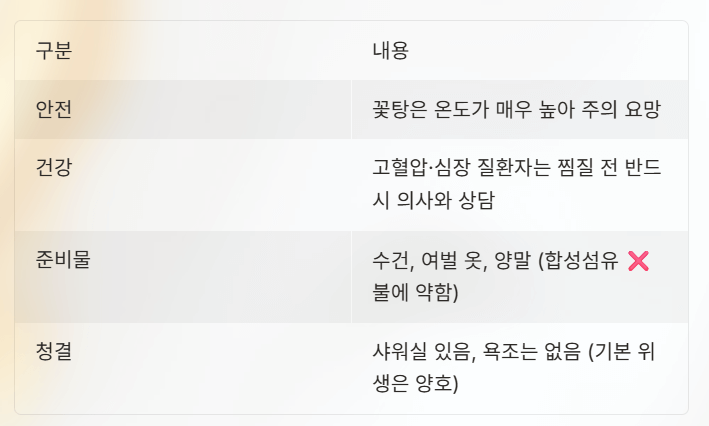 - 사우나·열탕은 수분 손실 주의