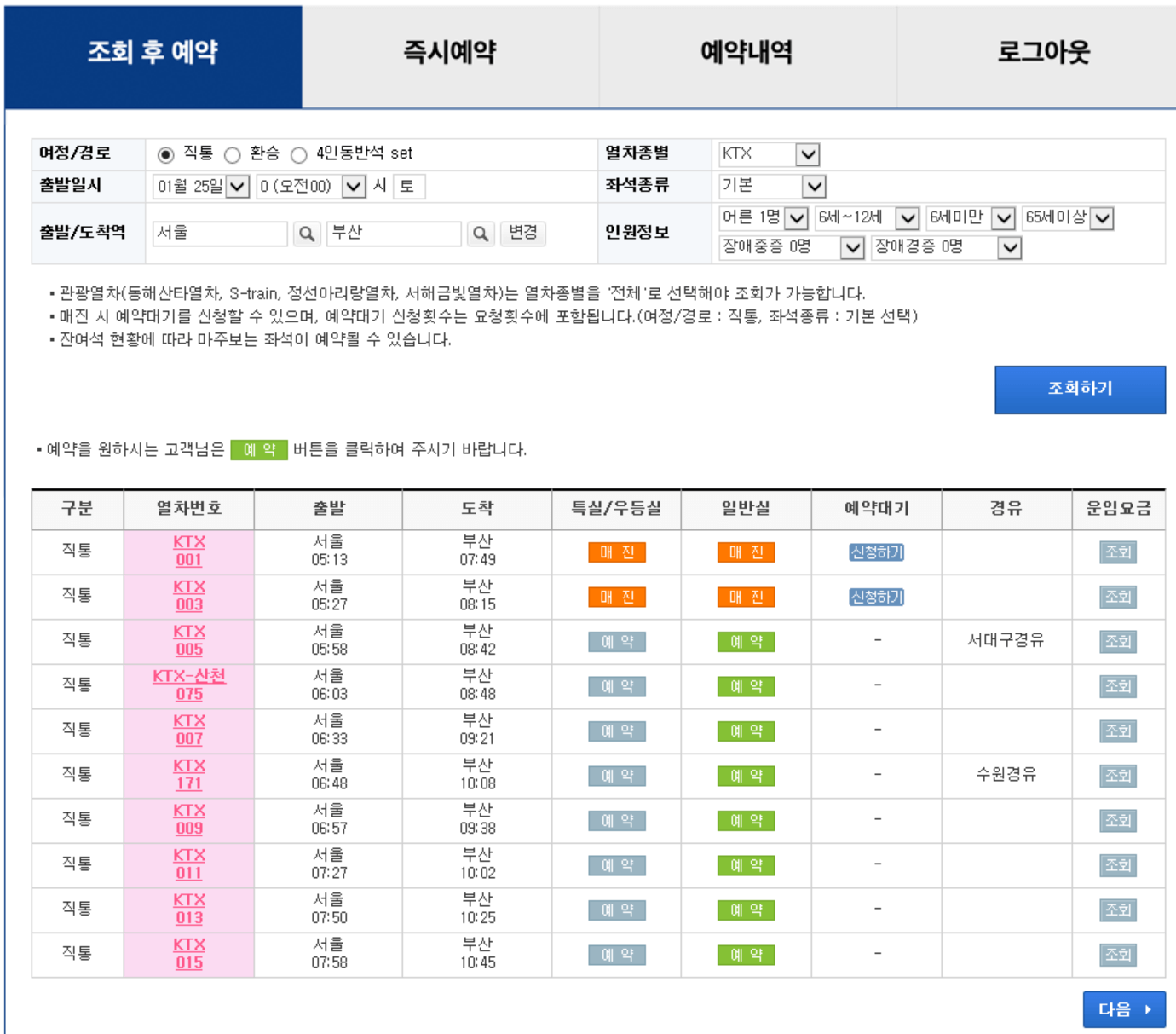 (열차시각 또는 열차번호를 설정하시면 바로 예약요청 가능합니다)