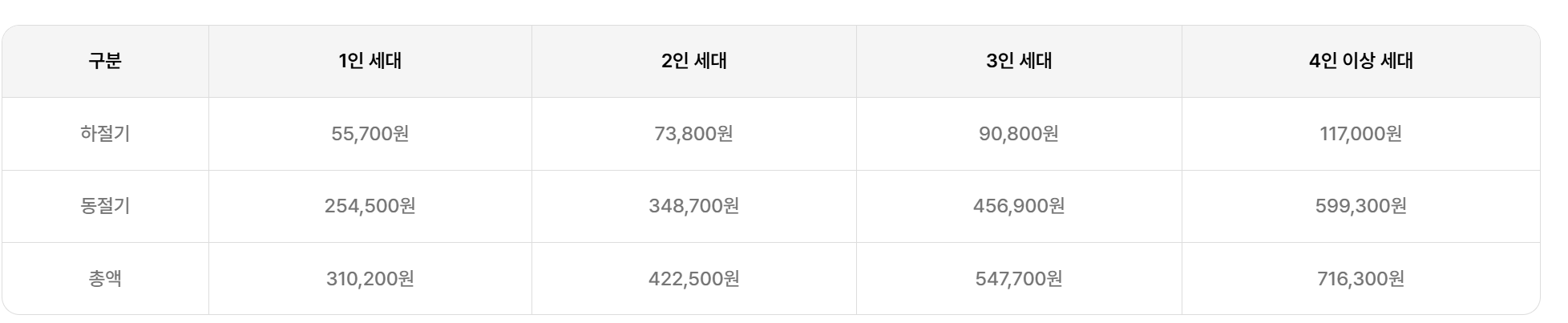 4인세대이상 기준으로 1년에 약 70만원정도 지원됩니다.