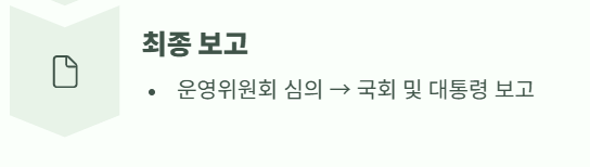 - 운영위원회 심의 → 국회 및 대통령 보고