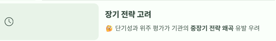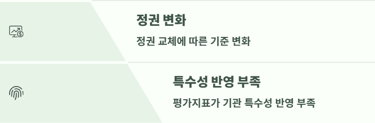 - 🤔 단기성과 위주 평가가 기관의 중장기 전략 왜곡 유발 우려