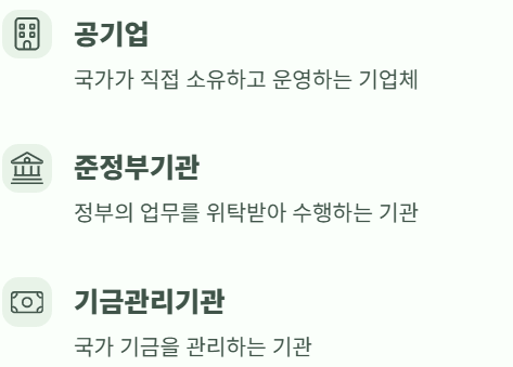 | 평가대상 | 공기업, 준정부기관, 연구기관, 기금기관 등 |