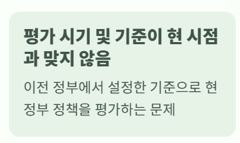 - 평가 시기 및 기준이 현 시점과 맞지 않음