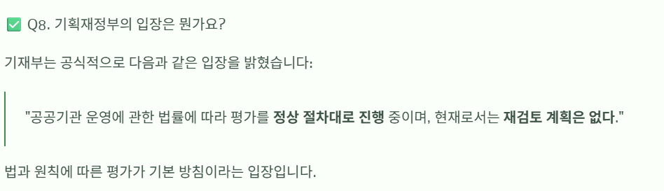 ✅ Q8. 기획재정부의 입장은 뭔가요?