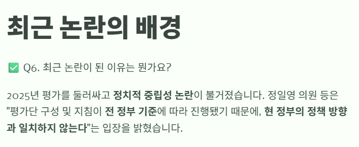 2025년 평가를 둘러싸고 정치적 중립성 논란이 불거졌습니다.