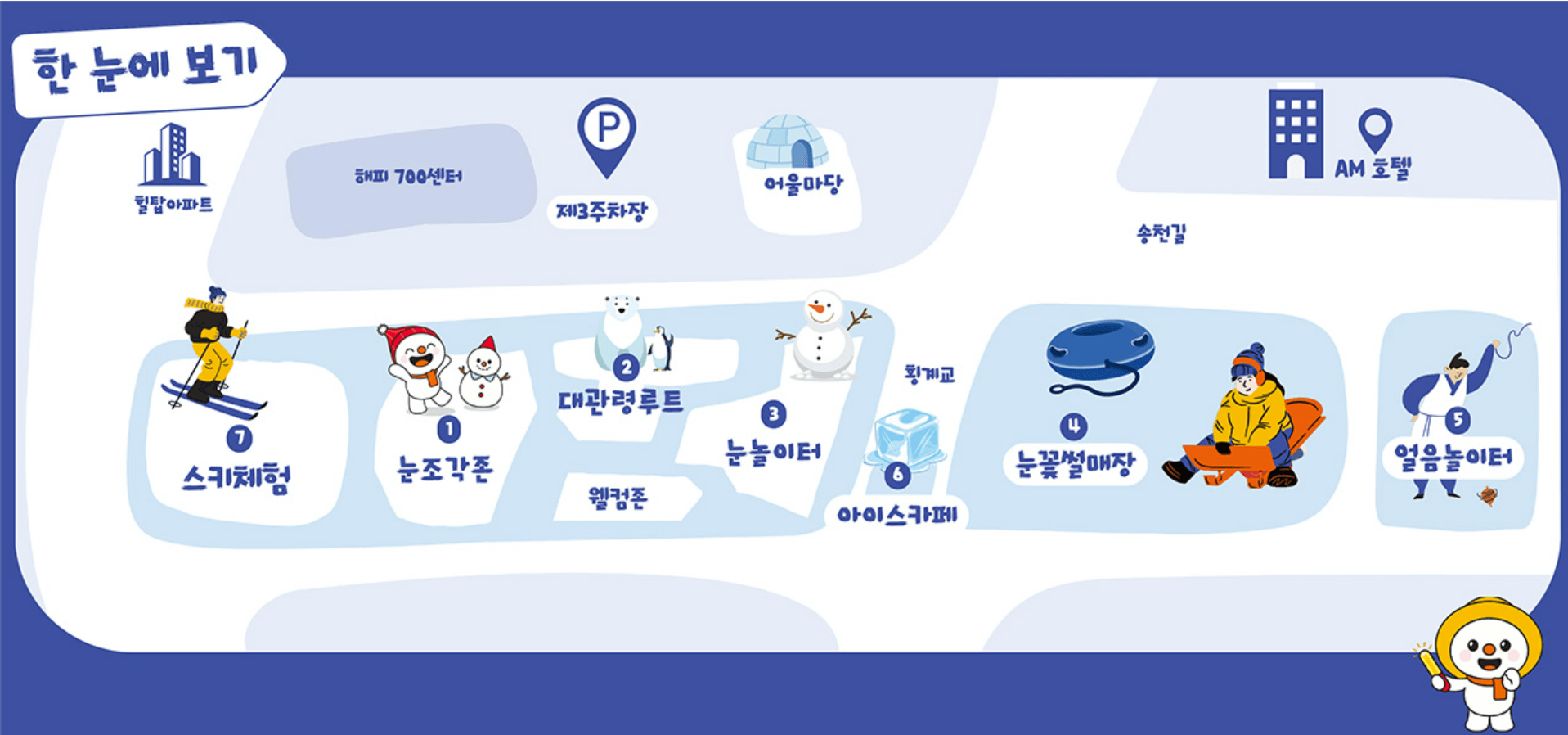 - 대관령 눈꽃축제 행사장에는 총 3곳의 주차장이 있습니다.