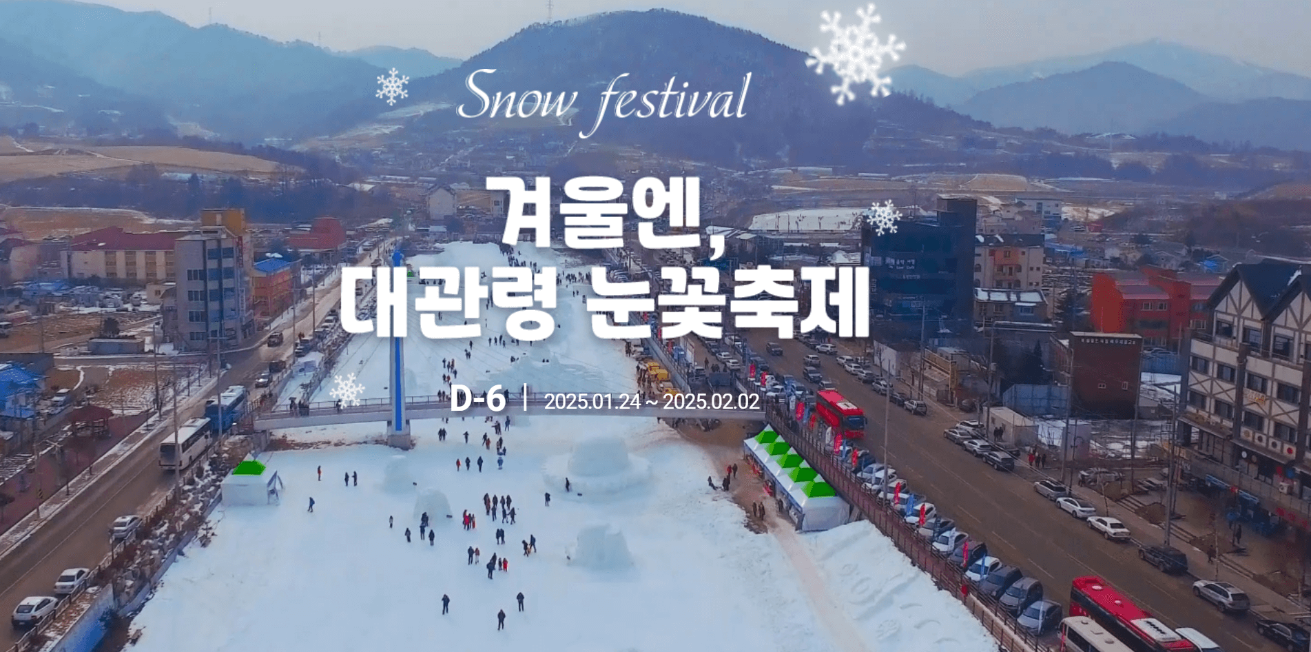 1) 대관령 눈꽃축제 제1주차장 : 대관령면 횡계리 707(올림픽메달플라자)