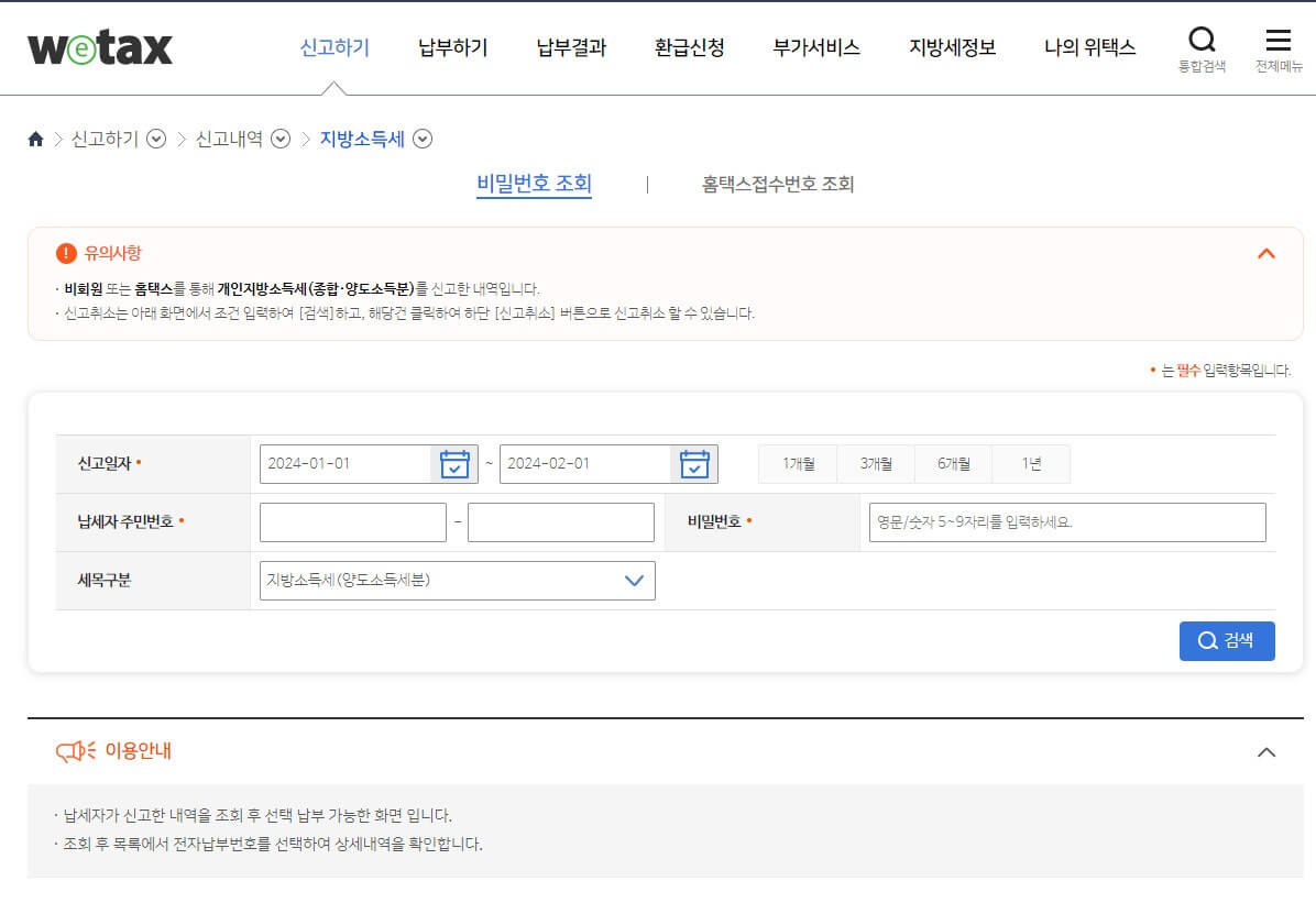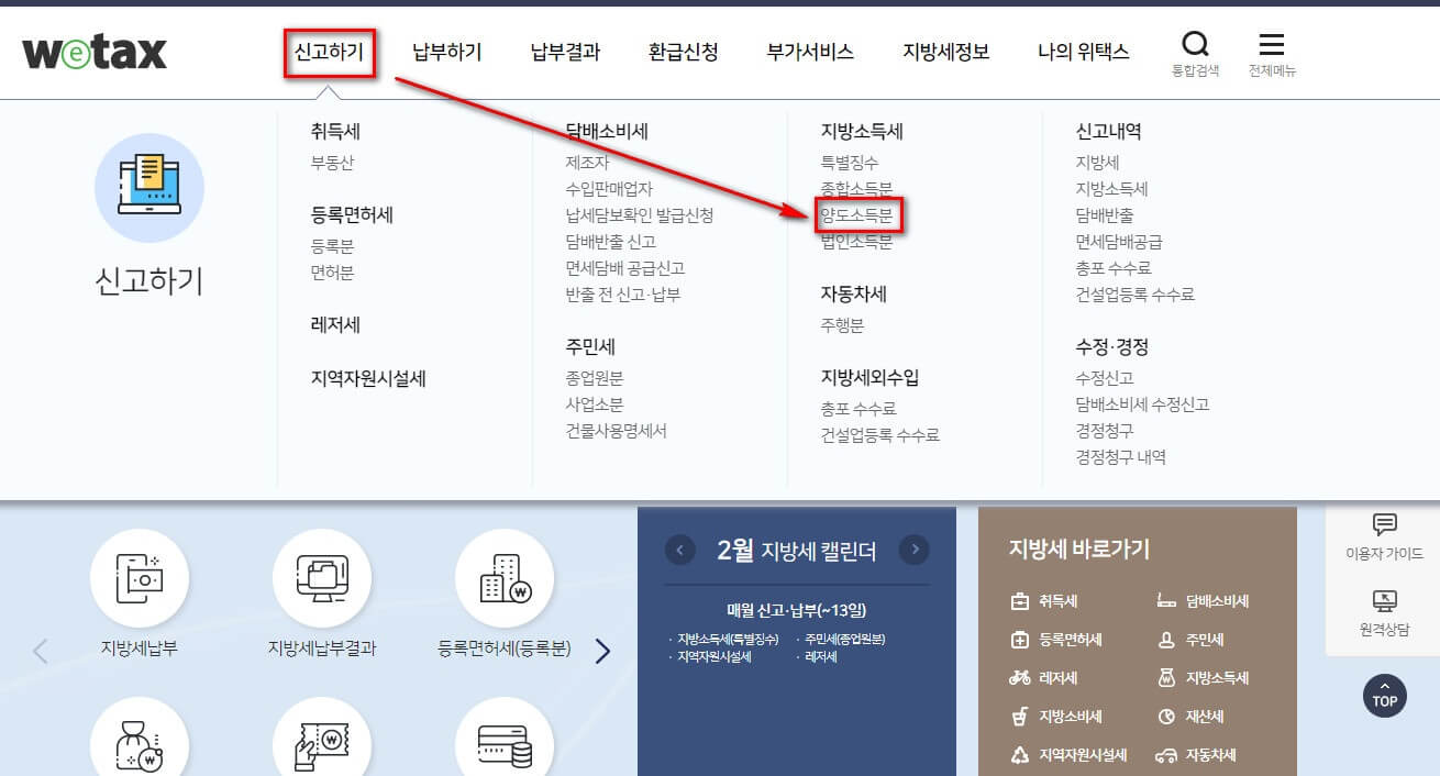 2) 위택스 ‘지방소득세(양도소득분)’ 신고하기
