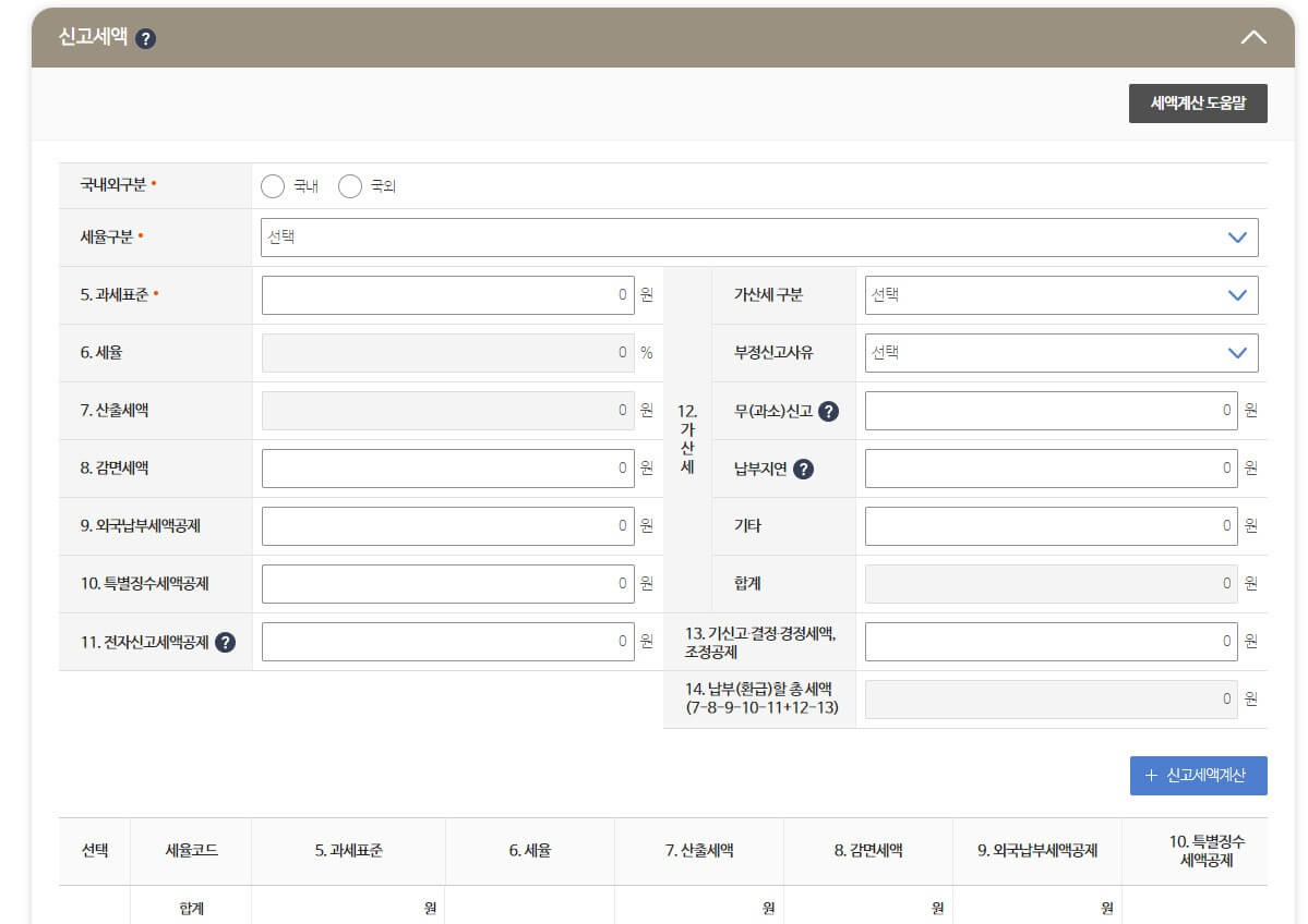 최초신고내역이 없으면 수정신고가 아닌 ‘기한 후 신고’가 되어 무신고가산세를 내야 합니다.