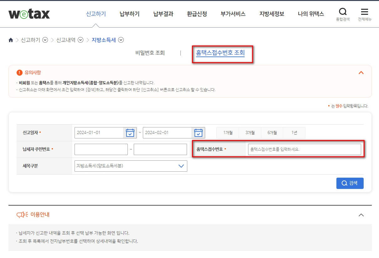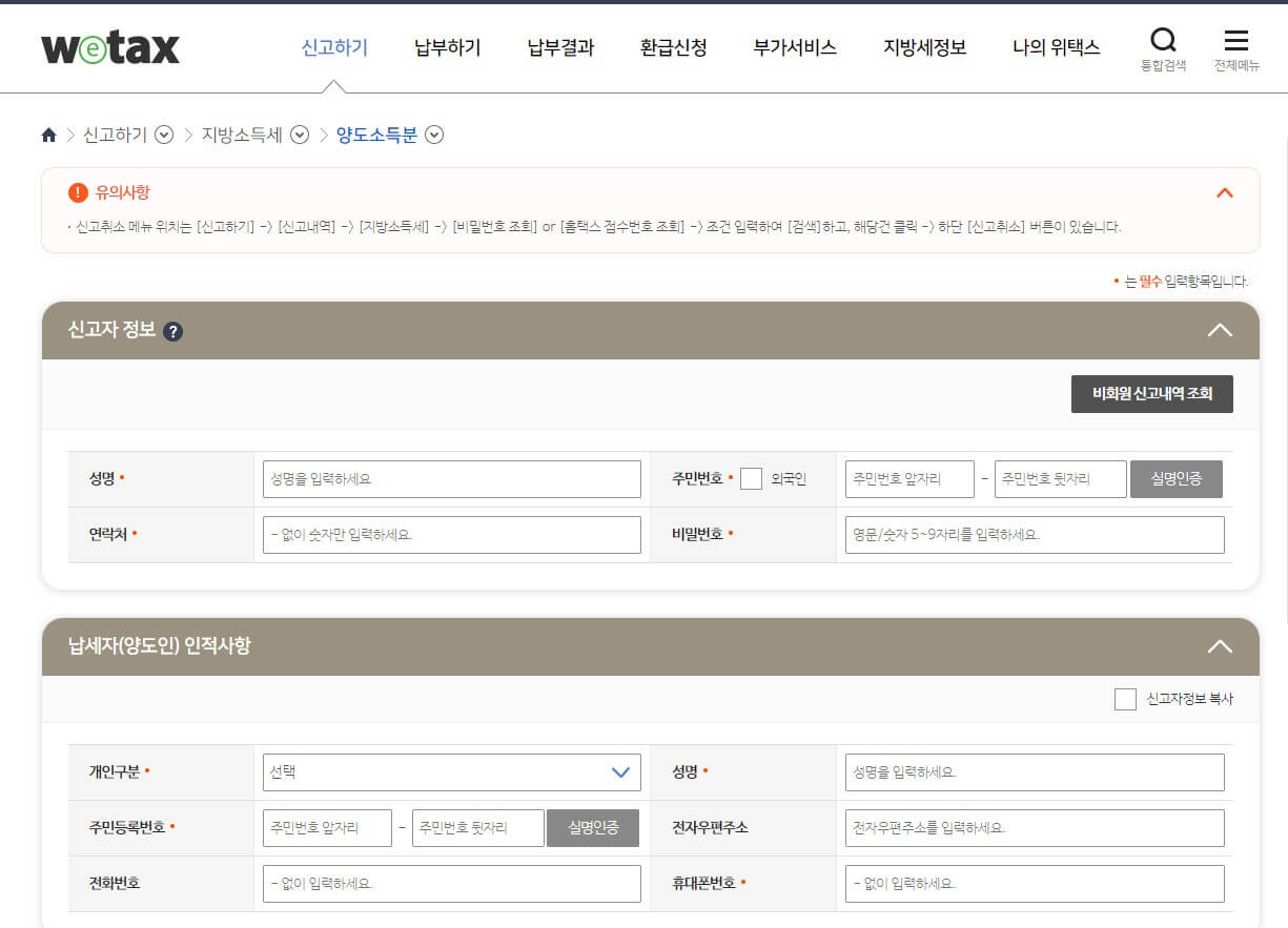 3. 양도소득세 홈택스, 지방소득세(양도소득분) 위택스 신고방법