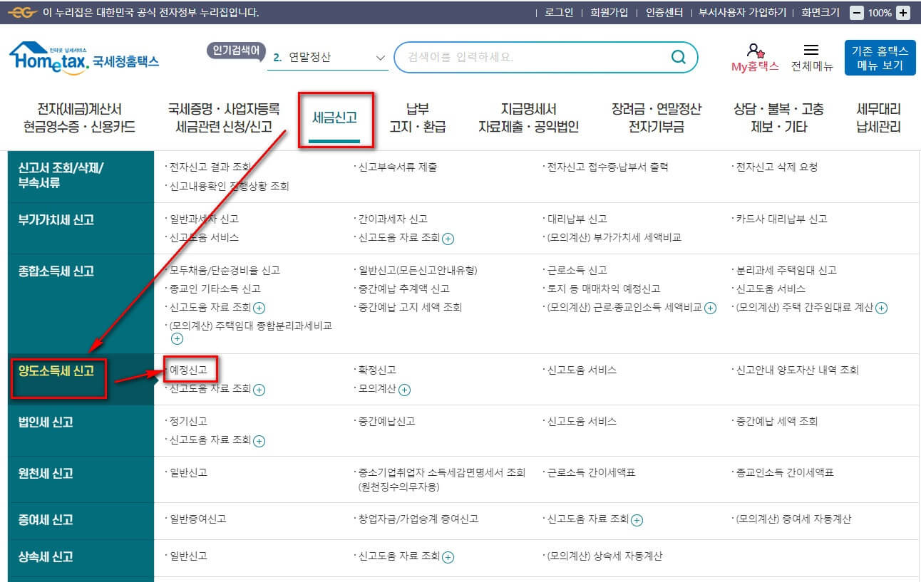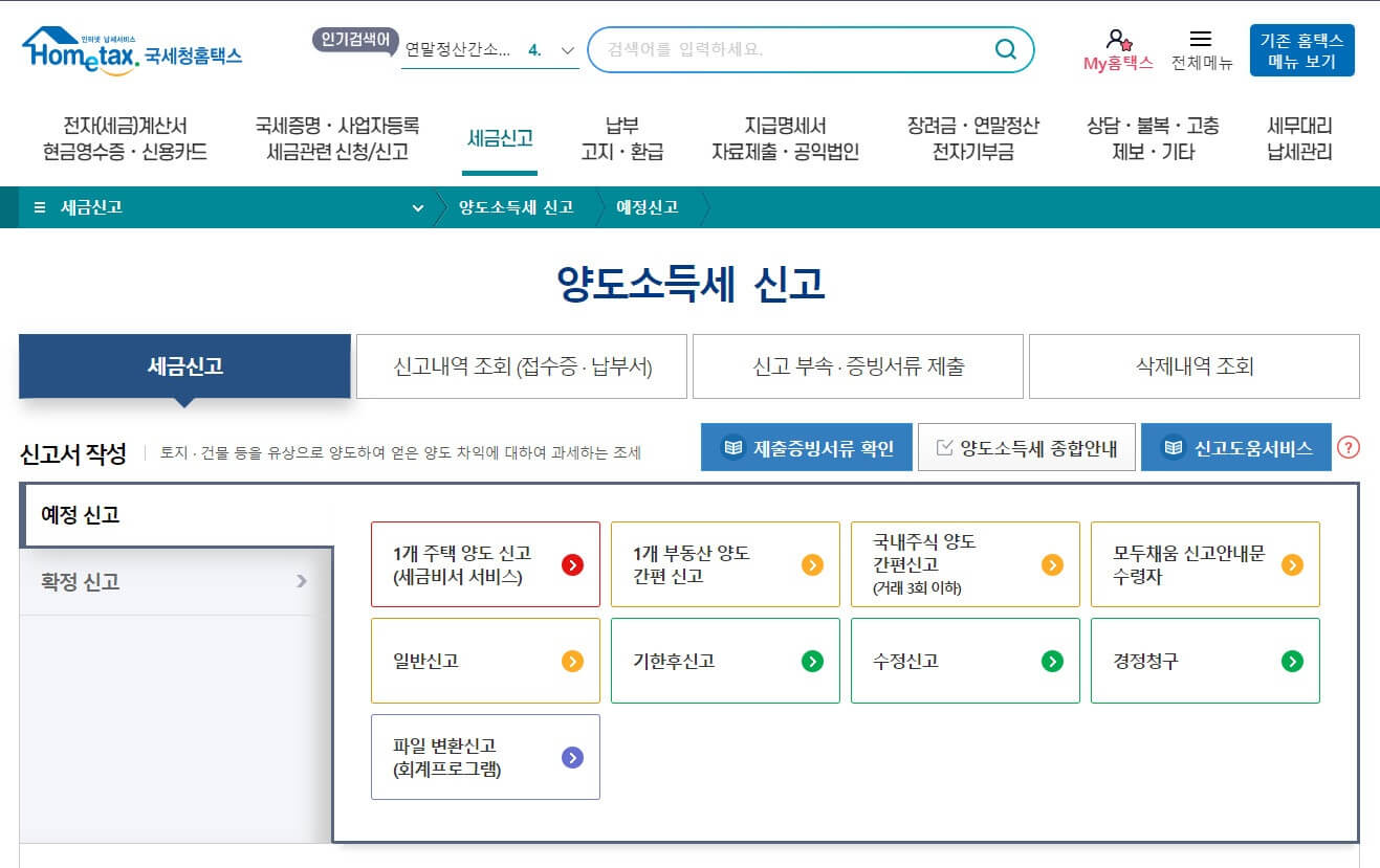 1) 홈택스 ‘양도소득세’ 신고하기