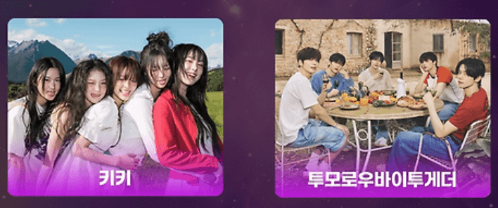 - 투모로우바이투게더(TXT), QWER, 피원하모니(P1Harmony), 피프티피프티, 웨이브 투 어스, 키키