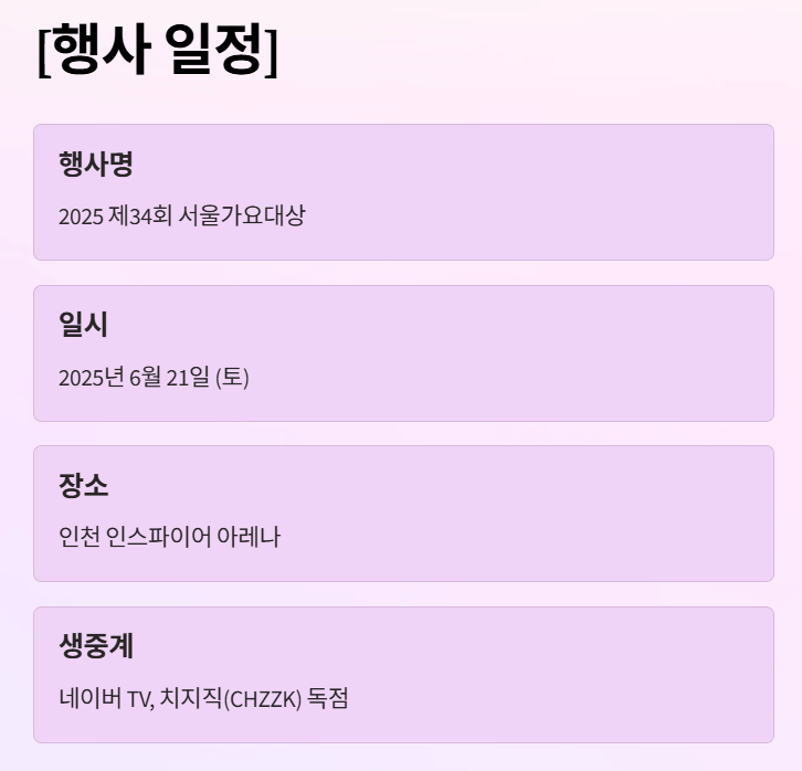 | 행사명 | 2025 제34회 서울가요대상 |