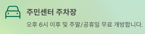 - 주민센터 주차장: 오후 6시 이후 및 주말/공휴일 무료 개방
